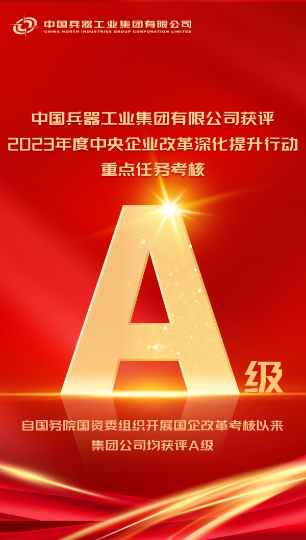 近日,國務院國資委印發2023年度中央企業改革深化提升行動重點任務考核結果,中國兵器工業集團有限公司獲得A級。自國務院國資委組織開展國企改革考核以來,集團公司均獲評A級。